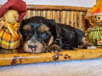 Our Yorkipoo puppies include parti, black and tan, and black. Poodle puppies include apricot, black, brown, cream, and phantom. Yorkshire Terrier puppies include parti and black and tan. Colors will vary depending on the parent dogs.