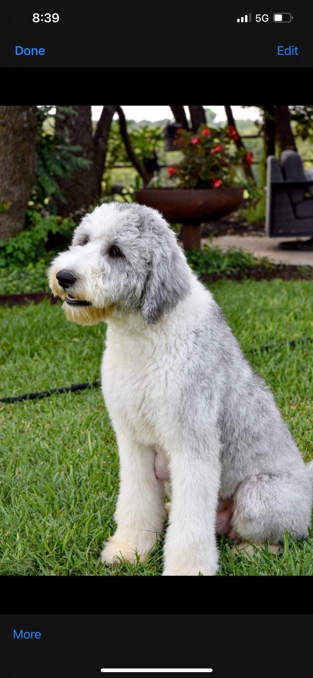 Major is a male Sheepadoodle. Carefully selected as a great representative of his breed, Joanne decided to make him part of their program. Joanne has passed Good Dog’s screening process, which involved a review of their breeding practices, environment, and the mental and physical health of their dogs.
