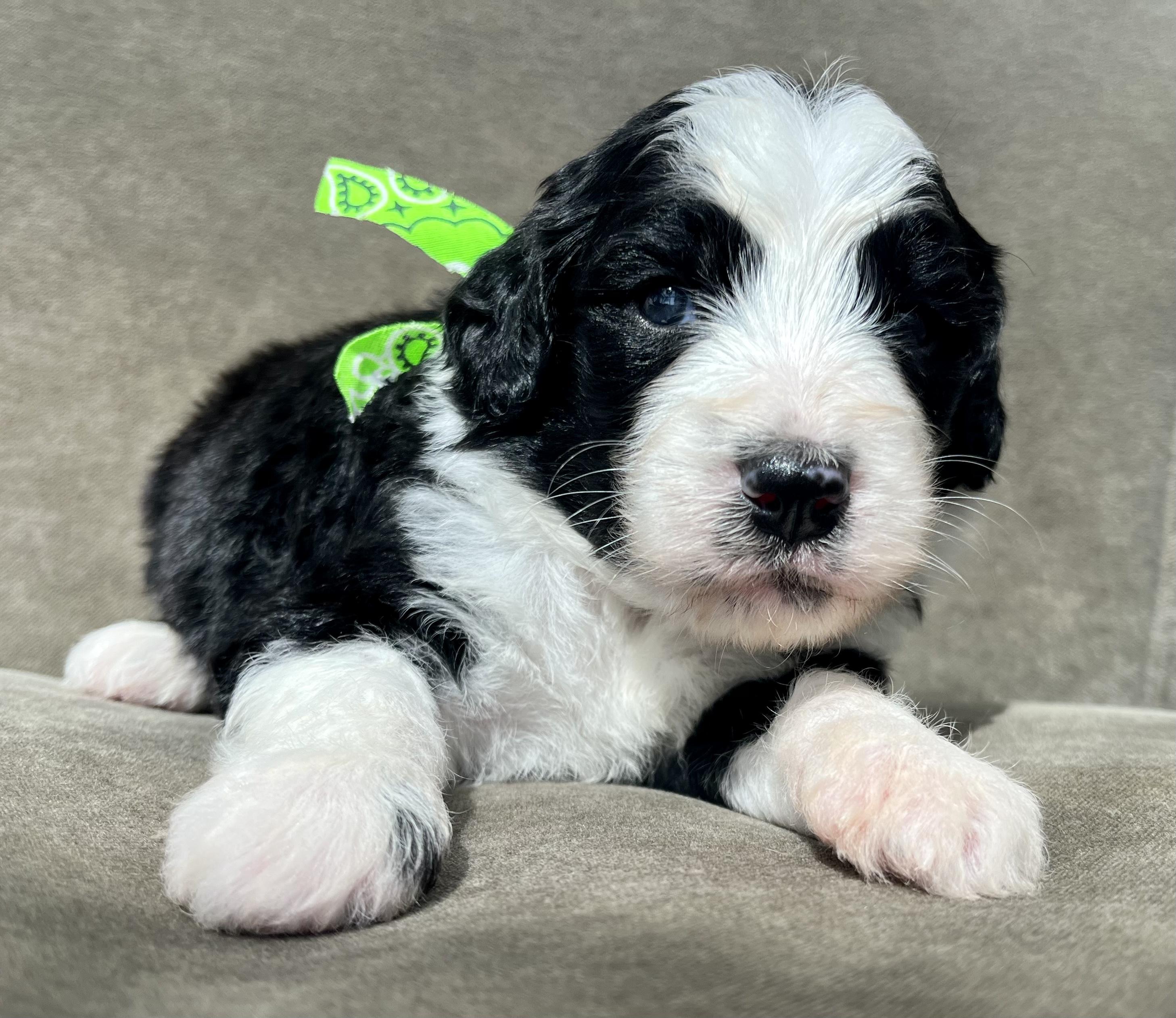 Janis is a female Sheepadoodle. Carefully selected as a great representative of her breed, Joanne decided to make her part of their program. Joanne has passed Good Dog’s screening process, which involved a review of their breeding practices, environment, and the mental and physical health of their dogs.