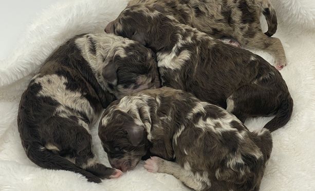 Our Goldendoodle puppies include cream, apricot, red, chocolate, black, merle, and parti. Poodle puppies include black, brown, cafe au lait, silver, silver-beige, and parti. Colors will vary depending on the parent dogs.