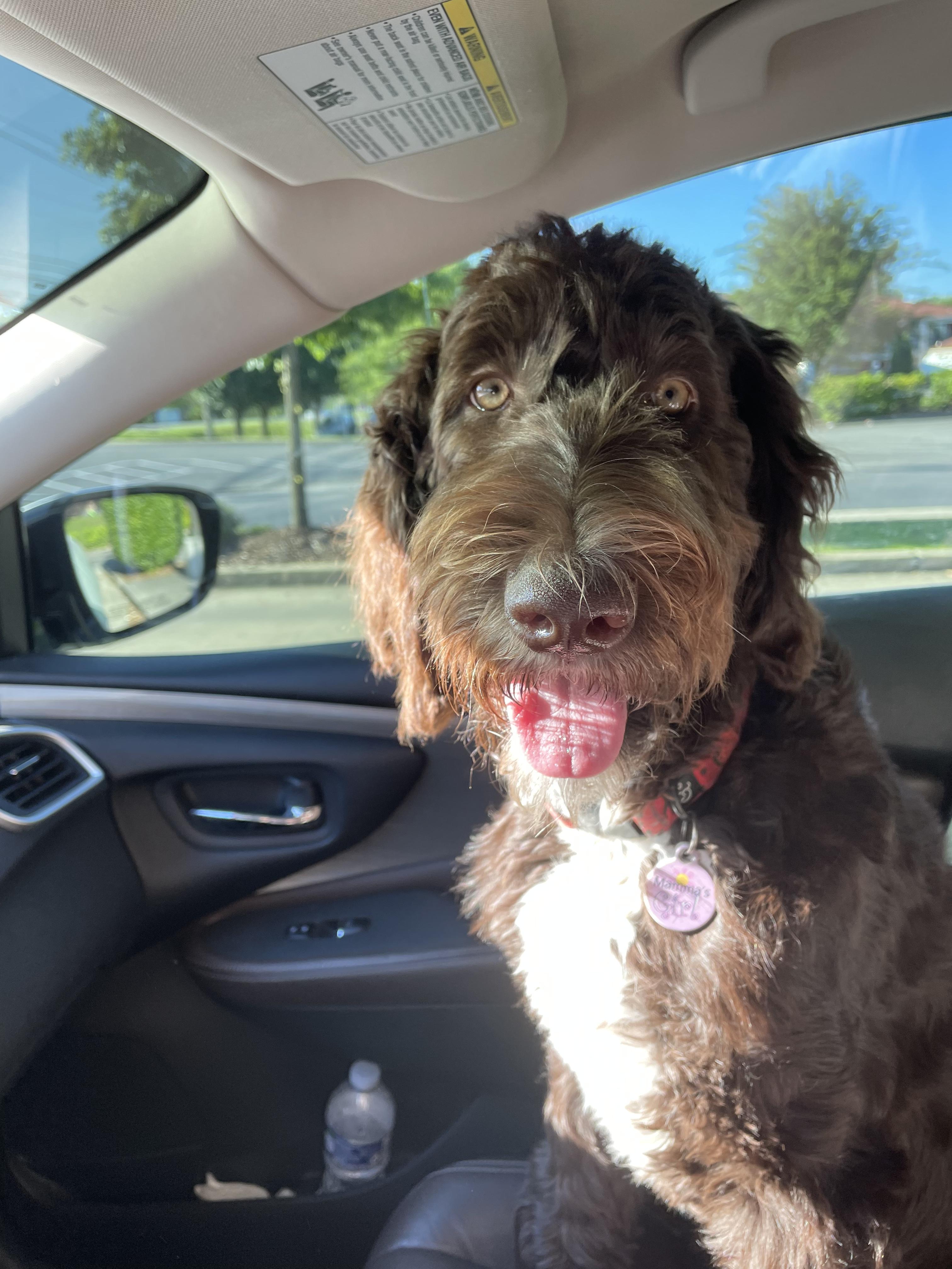 Hope is a F1b Goldendoodle. She is chocolate abstarct.