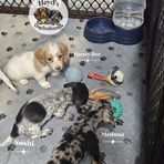 I am so happy with little Honey Bee. Her breeders were so easy to work with. Because of them working with the pups with crate training and potty spots, Honey is a breeze to potty train. It took one day for her to not go in her pen, as she has an outside pen that she goes potty. She is very vocal about her needs, if I don't give her enough time outside to poo, she gets this funny bark howl that means she needs to go back out and finish up. She sleeps in her crate and will whine to go out at night, then settles right back down to sleep.
