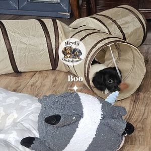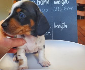 I use to rescue and foster many dogs. One of the dogs we took in was a dachshund. My husband and I fell in love with the breed ever since. We later in life moved to Hoquiam WA and decided to invest in breeding. We've been breeding since 2018. I'm very passionate about my doxies and I'm always learning more and more. When you know better, you do better!