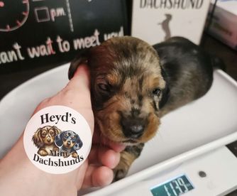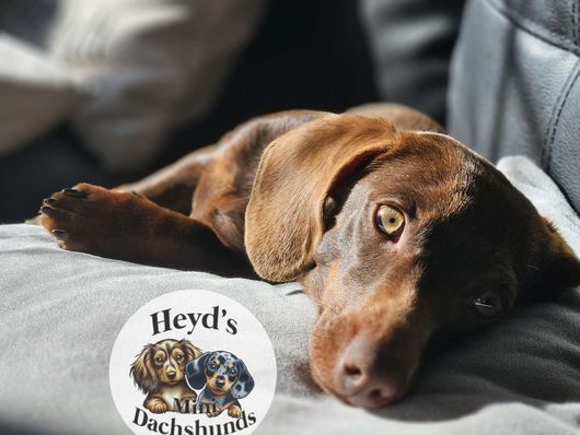 I am so happy with the puppy I got from Heyd's Mini Dachshunds! Britney was a pleasure to work with, being both responsive and accommodating. It is clear she is knowledgeable about dachshunds. Her pups are well socialized and you can tell she is passionate and caring for her dogs and their litters. Gus is such a doll, he's both sweet and smart. He is the cutest little companion I could have hoped for ❤️