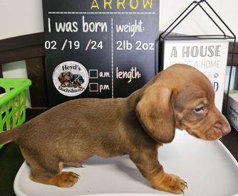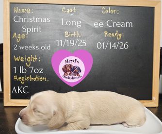 I can’t say enough positive things about Britney and her husband Ronnie. Britney was so responsive and answered all my questions. Her husband Ronnie drove 2 hours to meet me at the airport so I could fly our sweet puppy home. They gave me everything I needed for a successful trip home with a puppy. It was evident that both Britney and Ronnie truly care about their dogs. Our puppy settled right in and has the best temperament of any dog we have ever had. I would highly recommend Heyd’s to anyone considering a Dachshund puppy.