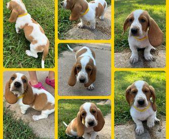 Our Basset Hound puppies include mahogany and white and lemon and white. Dachshund puppies include chocolate and tan, black and tan, and dapple. Colors will vary depending on the parent dogs.