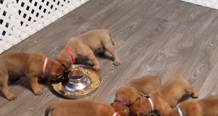Our puppies include red and fawn. Colors will vary depending on the parent dogs.
