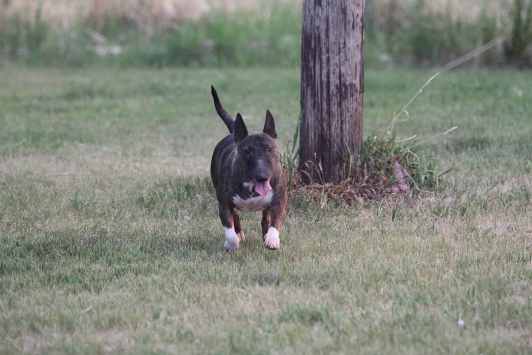 Lucy is a female Miniature Bull Terrier. Carefully selected as a great representative of her breed, Amy decided to make her part of their program. Amy has passed Good Dog’s screening process, which involved a review of their breeding practices, environment, and the mental and physical health of their dogs.