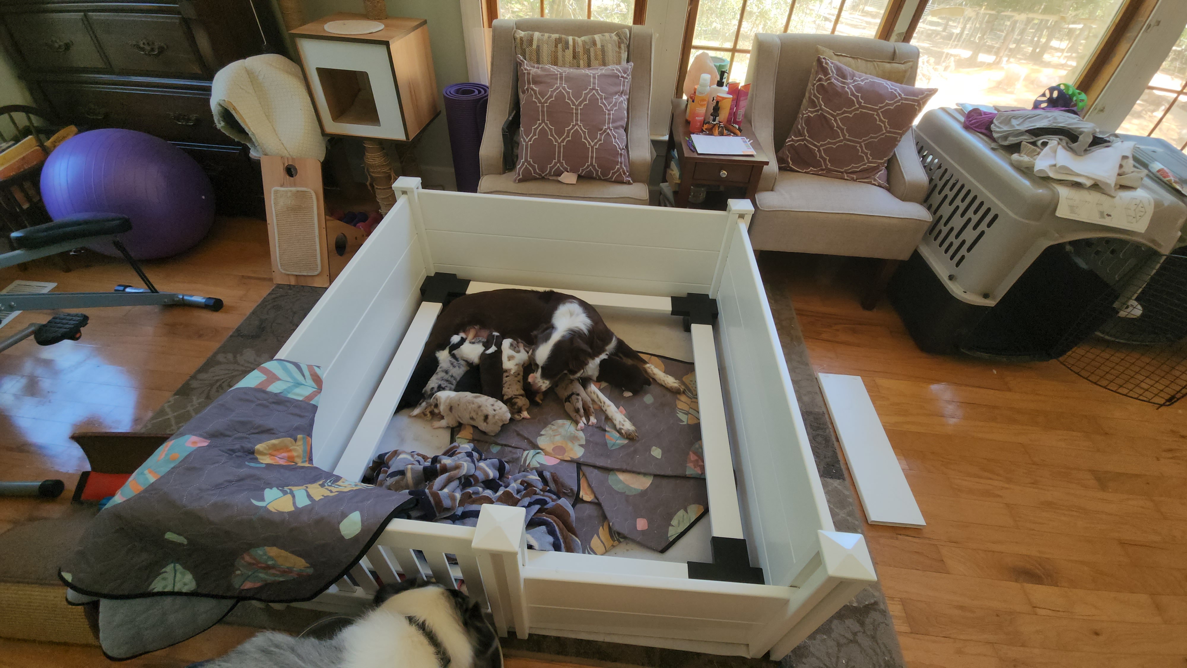 My first litter was of Labrador Retrievers in the 1980s. Problem was I had 3 small children at the time. It was a bit much. After those dogs crossed the rainbow bridge, my husband wanted to explore other breeds. We had a lovely Rottweiler for 8 short years. I learned to delve into breed longevity and health issues. We decided on an Australian Shepherd and I feel in love with the breed!