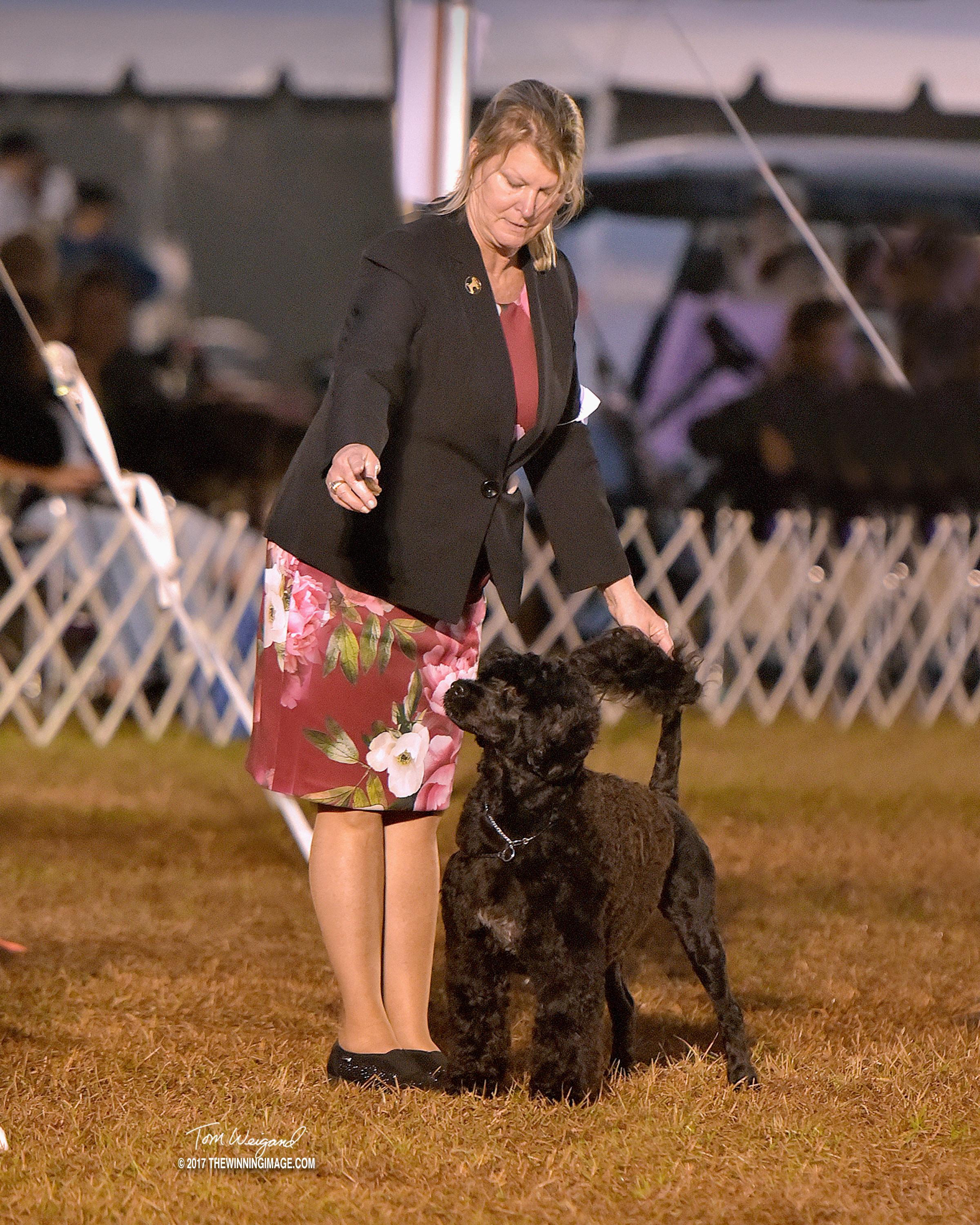 My first PWD introduced me to Obedience. We won HIT at the National Specialty our first time in the ring. Years later I wanted to try the conformation ring & was able to purchase a very nice female puppy from a good breeder that trusted me with a full registration. After completing an AKC Champion & CDX Obedience title I excepted mentoring to health test, study pedigrees & breed. Four generations later I produced the first Female platinum grand champion.