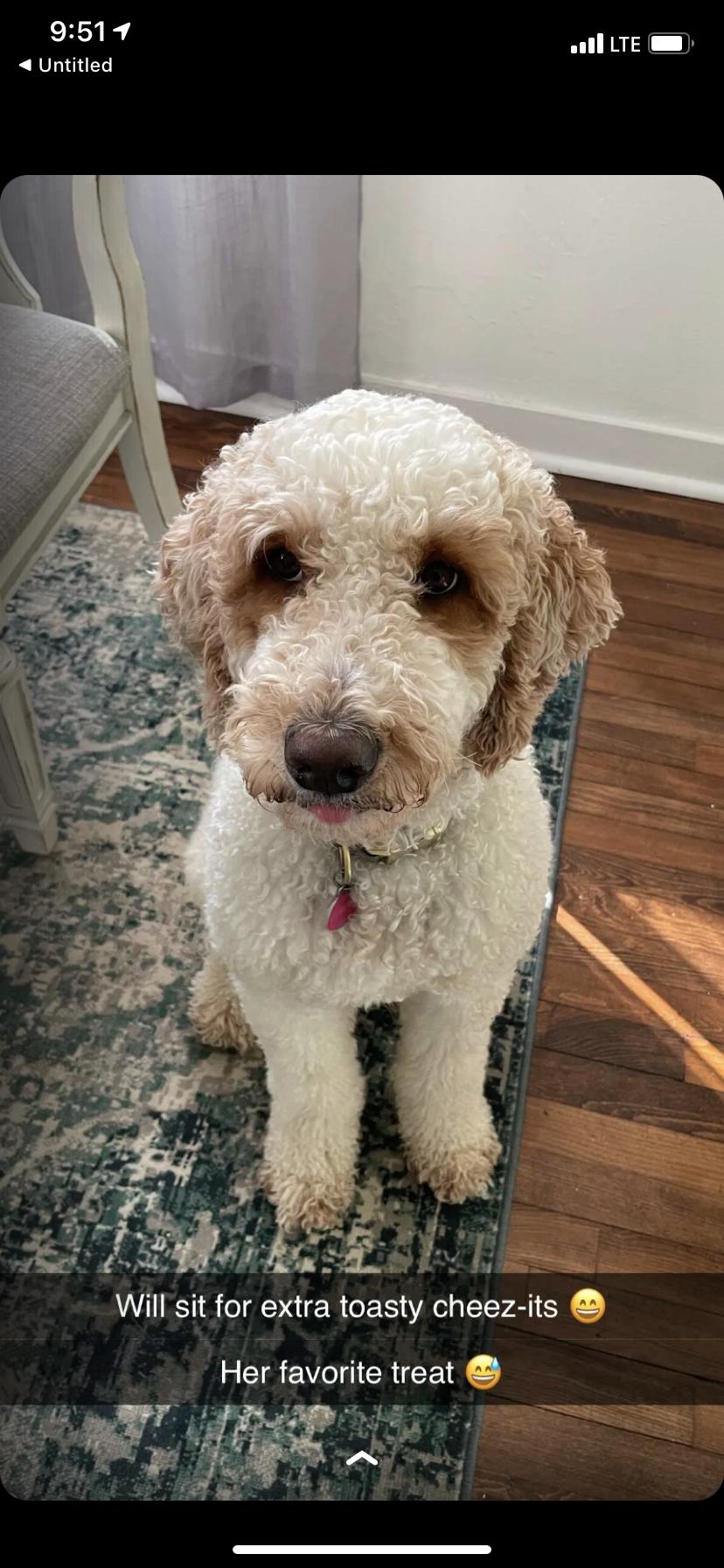 Piper is a female Aussiedoodle. Carefully selected as a great representative of her breed, Lindsay decided to make her part of their program. Lindsay has passed Good Dog’s screening process, which involved a review of their breeding practices, environment, and the mental and physical health of their dogs.