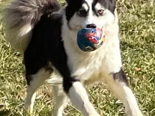 Wolverine is an import from Russia. He is Sable and White in color. Wolverine is very affectionate and seldom barks.