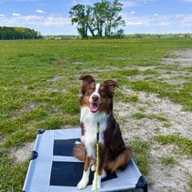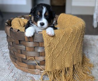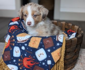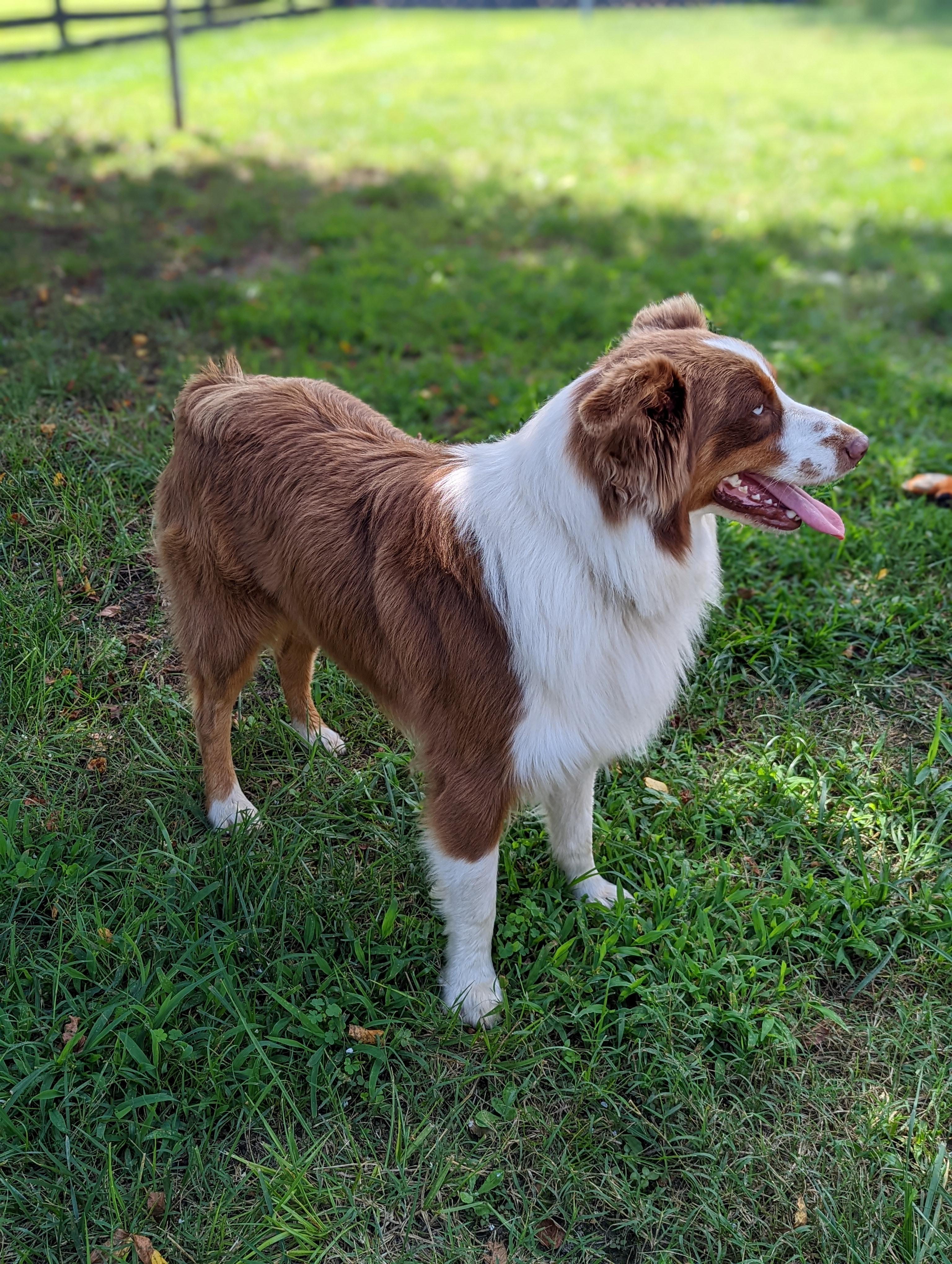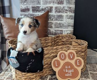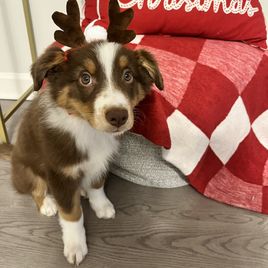 Kodah is my BEST friend! Hickory Pines & Jamie made the adoption process SO smooth. In his early weeks, Jamie kept me updated on the pup and allowed me to come meet and play with him any time! When it was time to bring him home, Jamie made sure we had all of his documents organized in a binder and a very thoughtful basket with puppy essentials, food, treats and toys. All of her adult dogs and puppies were very healthy, happy and well cared for. When we are ready for another Aussie, we will definitely contact Hickory Pines farm again.
