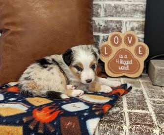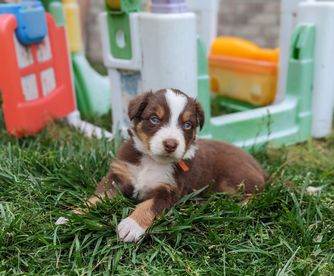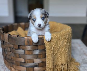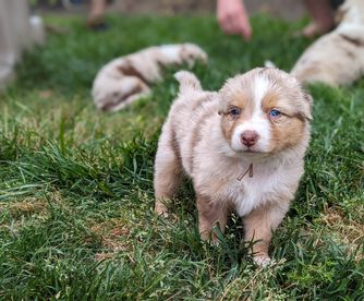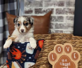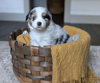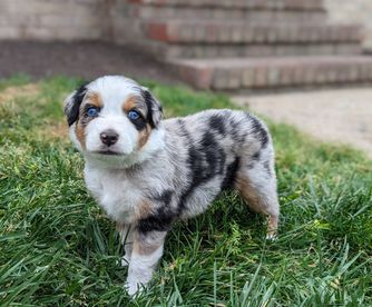 Our puppies include red merle, blue merle, black tri-color, and red tri-color. Colors will vary depending on the parent dogs.
