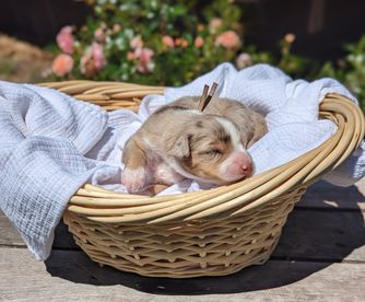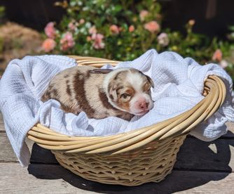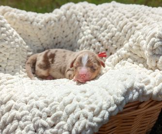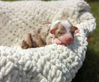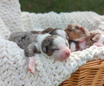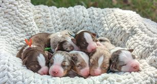 I actually fell in love with this breed thanks to my husband. When we first started dating he already had an Australian Shepherd "Gunner". I had always loved the way they looked but had never owned one. I soon fell deeply in love with the breed and research began. We ended up with our second Aussie within a year and the rest is history. We had our first litter of Aussies in 2021.