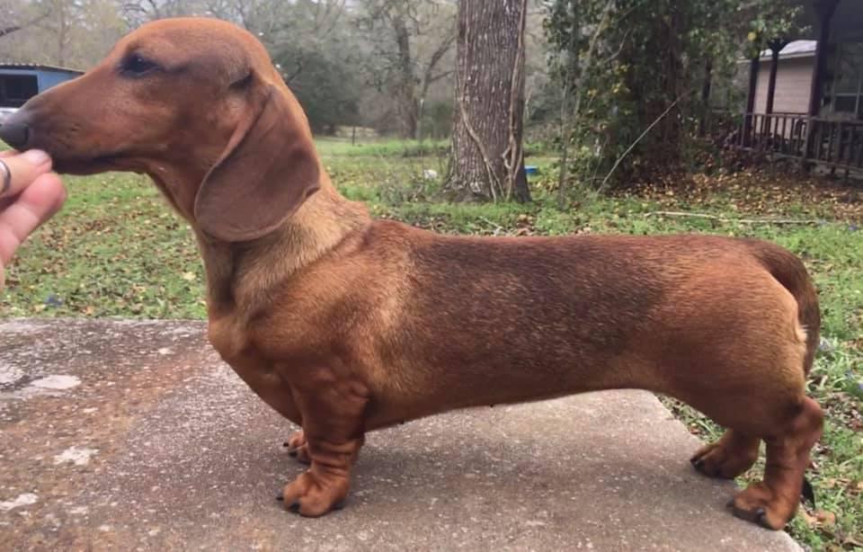Flaunt is a female Dachshund. Carefully selected as a great representative of her breed, Gloria decided to make her part of their program. Gloria has passed Good Dog’s screening process, which involved a review of their breeding practices, environment, and the mental and physical health of their dogs.