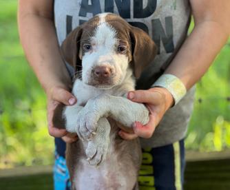 Dazzle is a female Catahoula Leopard Dog. Carefully selected as a great representative of her breed, Shelly decided to make her part of their program. Shelly has passed Good Dog’s screening process, which involved a review of their breeding practices, environment, and the mental and physical health of their dogs.