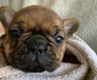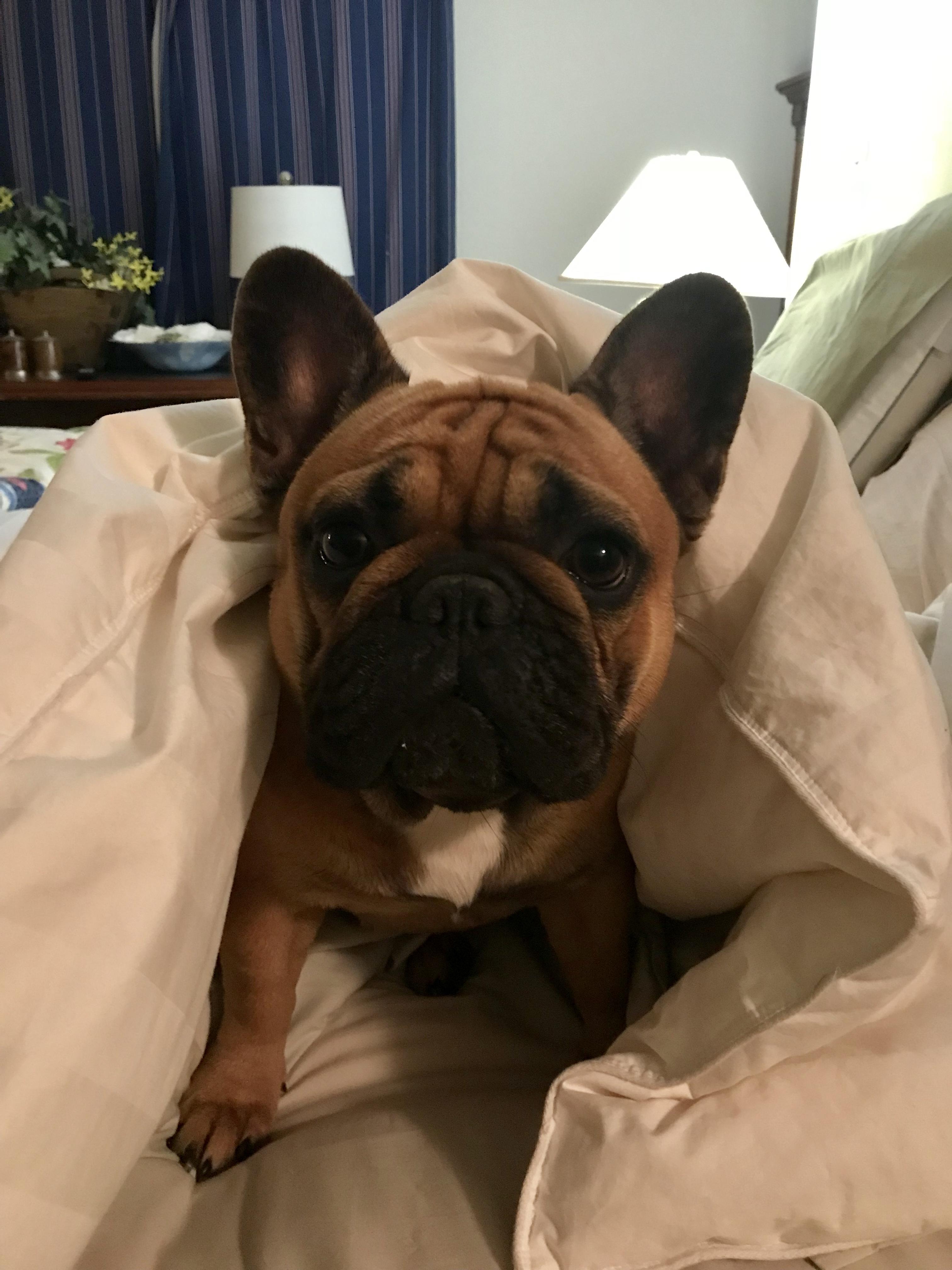 Gertrude is a female French Bulldog. Carefully selected as a great representative of her breed, Julie decided to make her part of their program. Julie has passed Good Dog’s screening process, which involved a review of their breeding practices, environment, and the mental and physical health of their dogs.