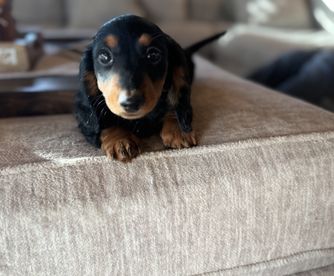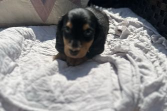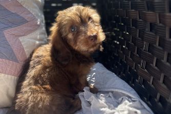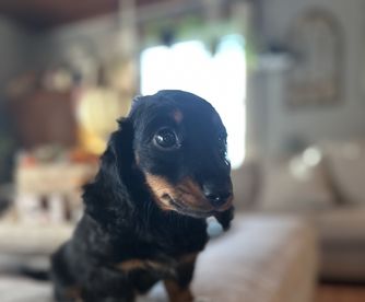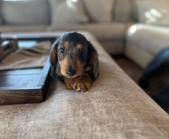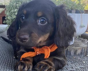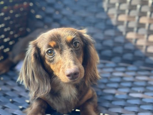 Naomi is as sweet as they come! She is very gentle, and spends most of her time on your lap! She is a longhair chocolate and tan miniature dachshund. She is APRI registered.