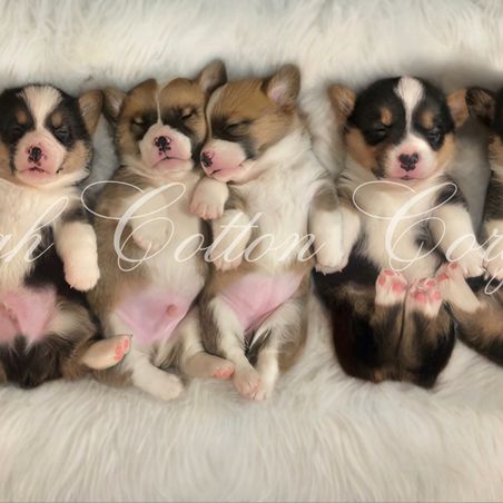 Our American Corgi puppies include red and white, sable and white, blue merle and white, and black and tan. Pembroke Welsh Corgi puppies include fawn, red, sable, white and red, black and tan, and blue. Colors will vary depending on the parent dogs.