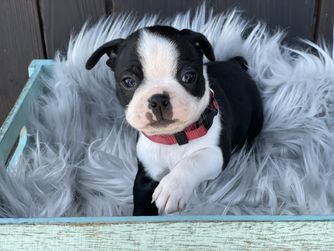 Bogie is a male Boston Terrier. Carefully selected as a great representative of his breed, Amanda decided to make him part of their program. Amanda has passed Good Dog’s screening process, which involved a review of their breeding practices, environment, and the mental and physical health of their dogs.