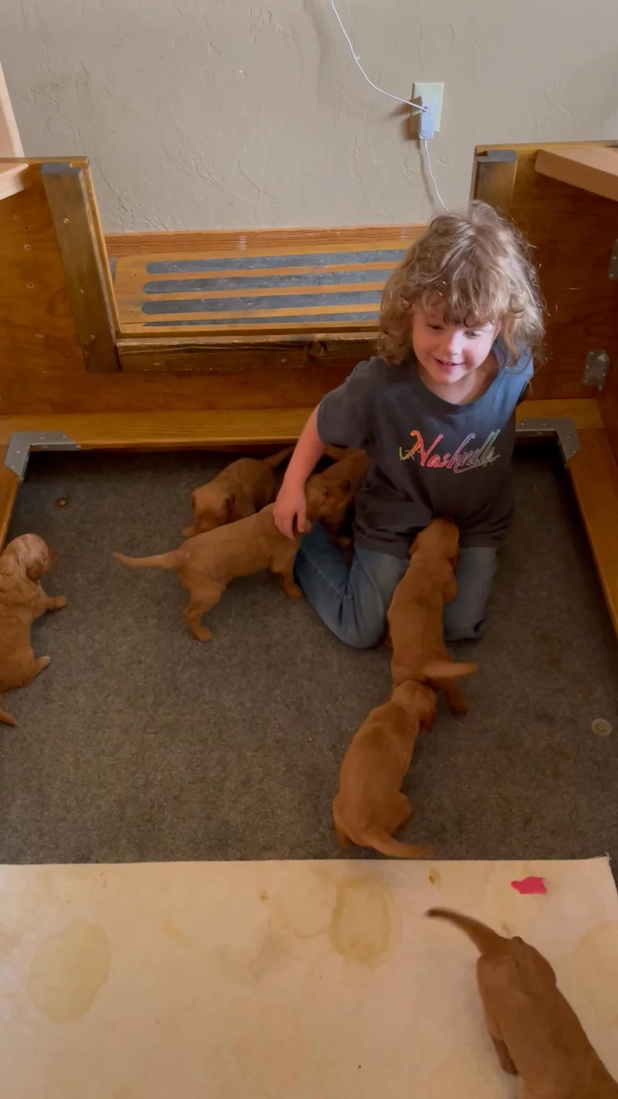 “Best Match for each puppy is decided in between weeks 7 and 8 after careful consideration for each puppy’s temperament, activity level, energy level, hunting drive, and retrieving passion. We compare all of the characteristics and traits of every pup and match them to their families on the waitlist before 8 weeks. At which point they go home a few days later. Match is always within the litter and sex the new pup parents decide. We take it from there! ”