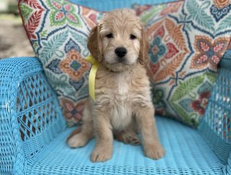 Goldendoodle puppies include cream, apricot, red, and parti. Colors will vary depending on the parent dogs.