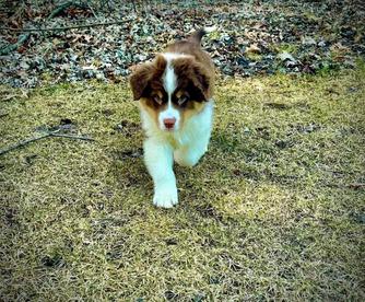 Our puppies are red & white. Colors will vary depending on the parent dogs.