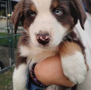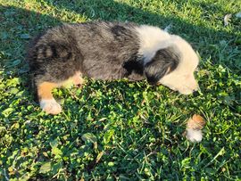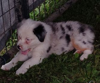 I'm Ruth B., the breeder behind High Desert Aussies located in Crestline, OH. Our puppies are raised inside with a loving family atmosphere. When old enough they are socialized to many things on the farm. Horses other dogs chickens cats many different varieties of farm life. They live in our home and are happy healthy puppies. When old enough they have lots of outside play time. Tails and dew claws are removed. They will be up to date on shots and worming. Our puppies will be great athletic or working dogs. They're very socialized when they find their new forever person in their new forever home.