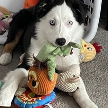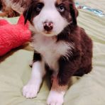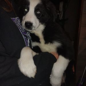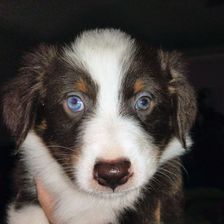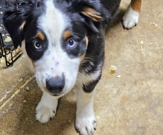 Skye is a beautiful black tri with bright blue eyes. She has a very sweet disposition. She is a little on the smaller side 40 lb. She loves water, loves to play fetch.