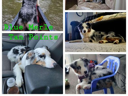 Our puppies include red merle, blue merle, black tri-color, and red tri-color. Colors will vary depending on the parent dogs.