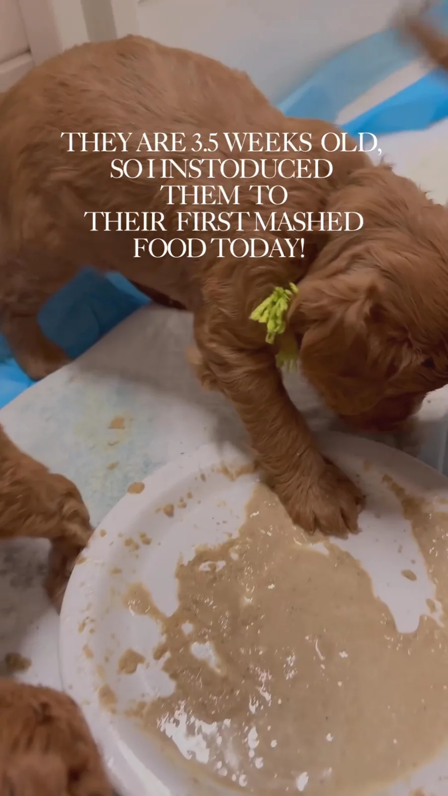 They have started eating their mashed food! More updates ➡️ Instagram @ high_desert_doodles Web ➡️ www.highdesertdoodles.com