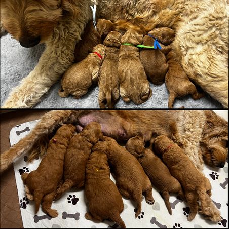 Honey’s Medium/Standard Goldendoodles are 5 weeks old now!