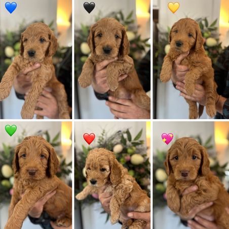 Our puppies include cream, apricot, and red. Colors will vary depending on the parent dogs.