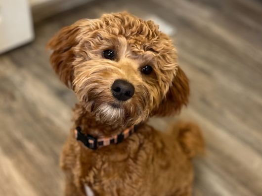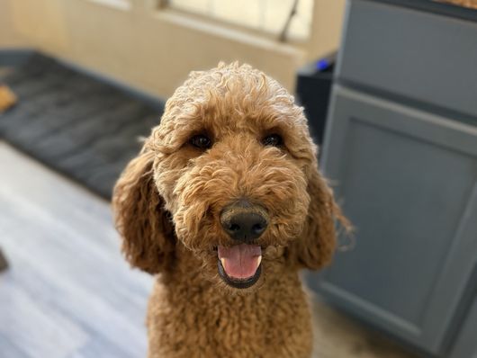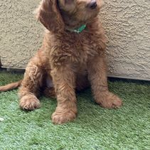 Rei is a gentle- natured Standard Goldendoodle. She was born in our house and been a lovely dog. She loves playing with little puppies and adult dogs both.