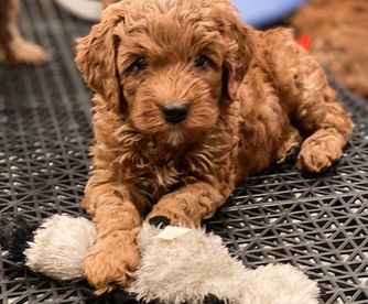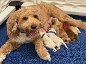 Our puppies include caramel cream, caramel, caramel red, red, apricot, and black. Colors will vary depending on the parent dogs.