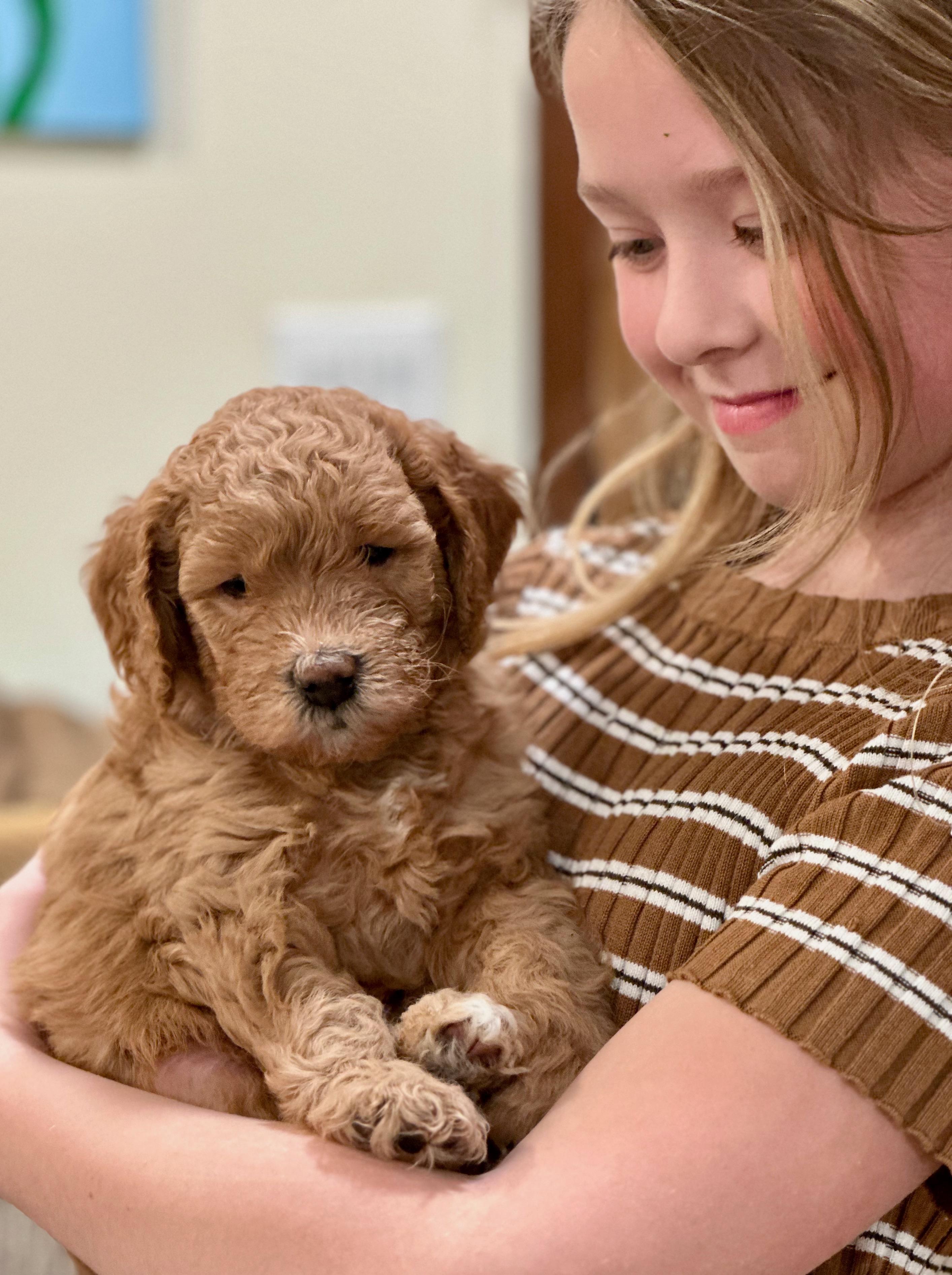 Rosie is a female Australian Labradoodle. Carefully selected as a great representative of her breed, Dakota decided to make her part of their program. Dakota has passed Good Dog’s screening process, which involved a review of their breeding practices, environment, and the mental and physical health of their dogs.