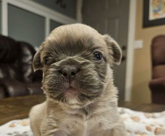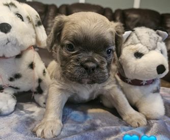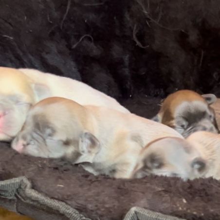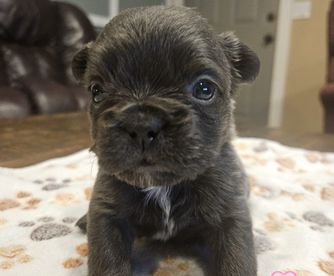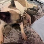 Mocha is a fluffy French bulldog she is AKC registered and has all the health clearances. She is fun and loving and loves to play in the water. She also loves her puppies and plays endlessly with them.