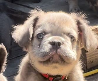 Waffles has such a unique personality. She is just full of energy and spunk. She loves playing in the water and hanging out outside with her friends Stella. She’s a great mom and makes beautiful, healthy pups. She is a AKC registered fluffy French Dog.