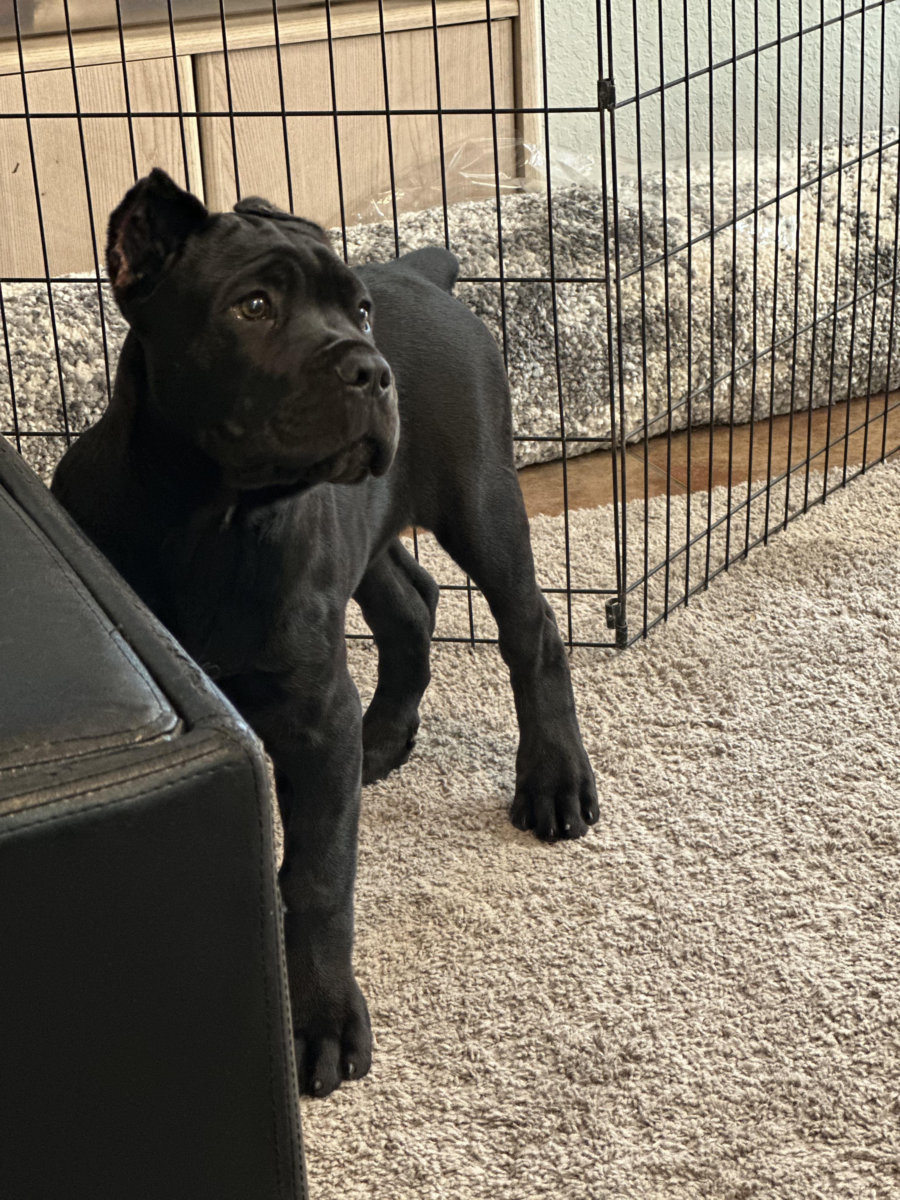 It was almost a 2 drive to High Royal Kennel, as I rolled up there was Rocky, his tail wagging just as happy as can be. It wasn't just a transaction, I met happy, gracious people and their Happy and Healthy Cane Corsos. Rocky, is sweet and still happy just some adjustments but what a grand addition to my home and my heart. Thank You J and S !!! Margia