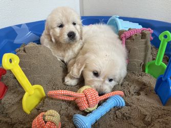 After researching different breeds that I love, I decided on English Cream golden retrievers. Our first two females are imports from champion Russian and that is how we got our start. We now also have one Male stud imported from the Ukraine.
