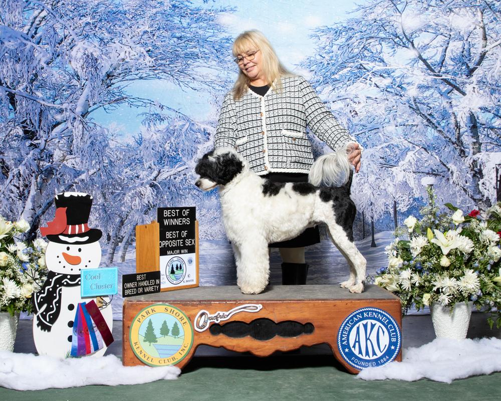 Sea is a female Portuguese Water Dog. Carefully selected as a great representative of her breed, Theresa decided to make her part of their program. Theresa has passed Good Dog’s screening process, which involved a review of their breeding practices, environment, and the mental and physical health of their dogs.