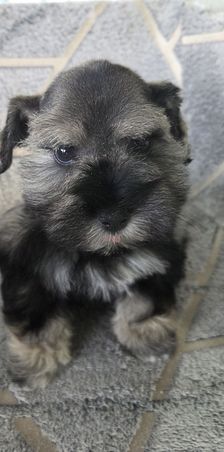 Check out Cookie! You gotta love her cute little nose. Shes getting her schnauzers cut on Thursday and will be ready to go home.