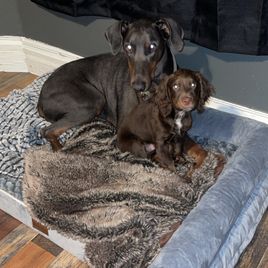 Zipper is very sweet and has a very calm demeanor. She is happy staying with her people and relaxing in the home. She gets along with other dogs and is probably the best house dog we have. Her potty breaks are her favorite because she's the first to chase the birds out of the yard! Zipper is a great wild bird hunting companion and has participated in dock diving and agility. She is an absolute joy!