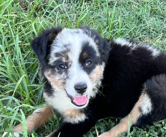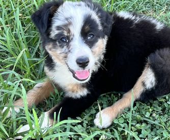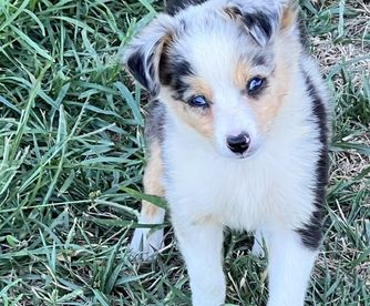 Our Miniature Australian Shepherd puppies include blue merle, black tri, red tri, and red merle. Toy Australian Shepherd puppies include black tri, blue merle, red merle, and blue tri. Colors will vary depending on the parent dogs.