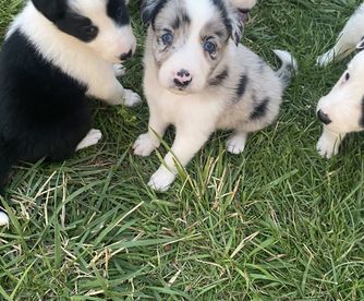 Our puppies include tri-color, blue merle, and red merle. Colors will vary depending on the parent dogs.