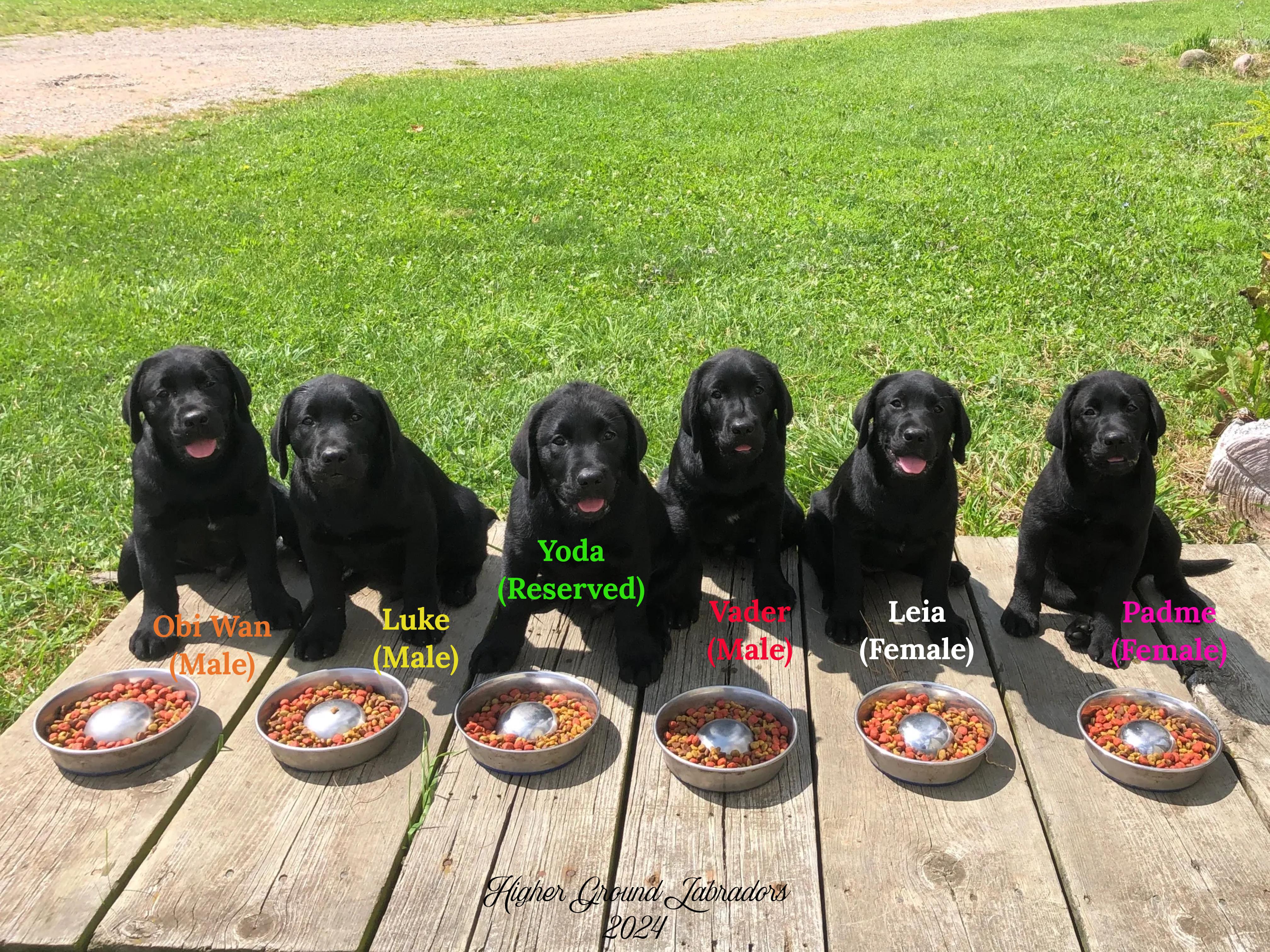 My husband and I are thrilled with the puppy we purchased from Lisa at High Ground Labradors. Our Magnum (previously known at Daniel from Rosa and Strider’s litter “Seven Brothers and one Sister”) is a high quality AKC registered black Labrador. We receive compliments all the time from people who know labs. They say: “he’s a gorgeous/beautiful pup”, “you’ve got a good one”, “he’s soooooooo sweet”, “beautiful coat”, and many more praises. We always give credit to Lisa and her team of family helpers who love on and work with these puppies daily. The pups are raised in a family environment and are trained right away. When we met Magnum and his brother at 11 weeks, the pups did not jump up, knew “sit”, “wait”, “go potty”, “eat”, how to walk on lead, partially potty trained, and crate trained. Having already learned these commands and skills are priceless benefits when bringing home a new puppy! Lisa is beyond thorough with DNA and health testing information for your specific puppy, microchipping, AKC registration information (for yellow and black), AKC bloodline charts, raising puppy information, business contract, vet checks and health records, and more. She’s detailed oriented and walked us through everything. And Lisa has been available to us through every part of our journey with Magnum. She works faithfully to assure the pups she’s brought into this world thrive in the new families in which they will live. Her love, care, dedication, and great business practices extend beyond the day the pup goes home. My husband and I feel like we truly have a relationship with Lisa and give thanks to God for connecting us to her. Our experience has been fantastic and Magnum is truly a blessing in our lives. HE’S SO SMART! 😍 (Thanks again, Lisa! You’re the bestest!🐶🥰)