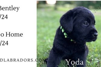 Strider is such a fun loving guy! He is active and loves playing fetch, but likes staying right by your side. He is larger boned with the great features of the English Labrador show lines. Strider listens well and has such a great personality that everyone loves.