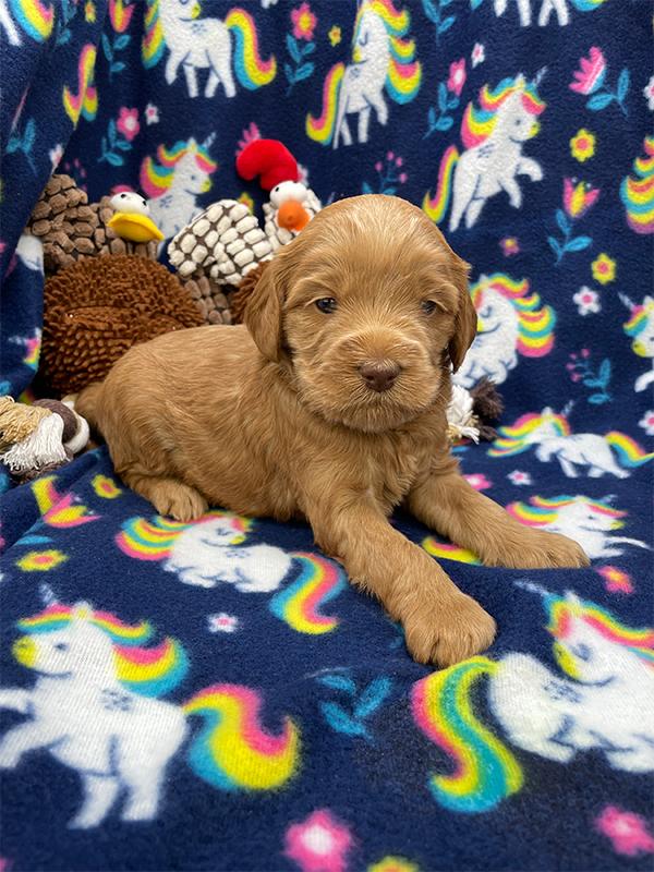 Clarabelle is a female Australian Labradoodle. Carefully selected as a great representative of her breed, Michael and Sara decided to make her part of their program. Michael and Sara has passed Good Dog’s screening process, which involved a review of their breeding practices, environment, and the mental and physical health of their dogs.