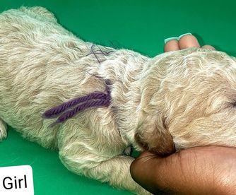 Kennedy is a 50 lb goldendoodle. She is health tested through Embark and carries 1 copy of Ichthyosis. She is also CKC registered